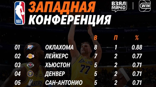 ⛹️♂️ Турнирные таблицы конференций Запада и Востока