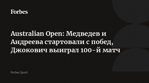 Australian Open: Медведев и Андреева стартовали с побед, Джокович выиграл 100-й матч