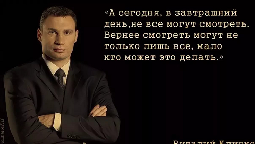 Знаменитый говорун афоризмами подтвердил свой статус непревзойдённого мастера разговорного жанра. Говорить так как он, могут не только лишь все. Как говорится, отлил из бронзы. Известно, что Виталий Кличко раньше хорошо занимался боксом, а до того, видимо, плохо занимался математикой. И уж точно до него не донесли мысль М...