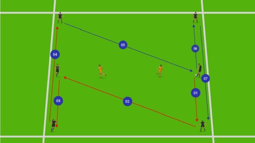 3. Игроки, которые осуществляют прессинг в данном упражнении, должны действовать сообща...