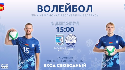 🏐 Волейбол в Бресте! 📆 6 декабря в 15:00 на СК «Олимп» (ул. Дзержинского, 46) пройдет матч 35-го чемпионата Республики Беларусь между командами «Западный Буг» и «Столица» (г.Минск). Вход свободный!...