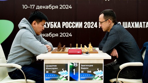 В Ханты-Мансийске завершился турнир на Кубок России-2024 по шахматам среди мужчин. Финальные игры состоялись 17 и 18 декабря. В борьбе за главный приз встретились Вадим Звягинцев (Москва) и Жамсаран Цыдыпов (Республика Бурятия). В полуфинале шахматисты одолели соответственно Илью Ильюшенка (ХМАО-Югра) и Никиту Афанасьева (Краснодарский край). Первая встреча Звягинцева и Цыдыпова за шахматной доской в югорском финале Кубка России состоялась 17 декабря. Игра проходила с преимуществом Звягинцева, который...