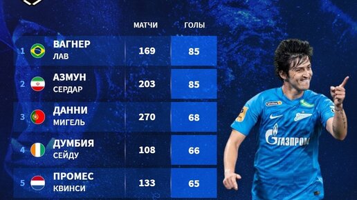 Лучшие бомбардиры-легионеры в истории РПЛ: Вагнер Лав против Сердара Азмуна