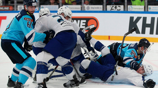 Поединок на льду: хоккеисты «Барыса» и «Сибири» набросились друг на друга после стартового вбрасывания