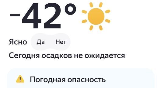 Оказывается на улице до обеда было минус 42 С. Очень холодно. С завтрашнего дня должно пойти на потепление...
