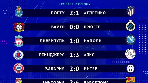Всем доброго дня! А среду мы начинаем с результатов вчерашних матчей Лиги Чемпионов УЕФА