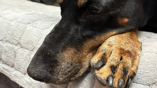 Она с утра лежит не лая,
