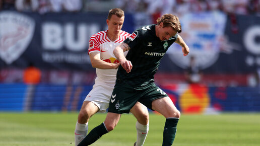 «Лейпциг» и «Вердер» сыграли вничью в матче 33‑го тура чемпионата Германии по футболу. Встреча прошла в Лейпциге и завершилась со счетом 1:1. У хозяев гол забил Беньямин Шешко, также мяч в сетку своих ворот отправил полузащитник «Лейпцига» Николас Зайвальд. «Лейпциг» с 64 очками занимает четвертое место в таблице Бундеслиги. «Вердер» (39) располагается на 11‑й строчке. В других матчах тура менхенгладбахская «Боруссия» и «Айнтрахт» также не смогли определить победителя — 1:1, «Кельн» в концовке игры вырвал победу у «Униона» — 3:2, «Фрайбург» сыграл вничью с «Хайденхаймом» — 1:1...