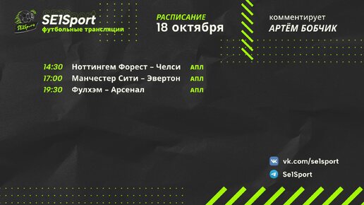📅 18 октября 2025. Футбол возвращается! Перерыв на матчи сборных — в прошлом. Теперь снова пахнет травой, эмоциями и голами: клубный футбол возвращается! И возвращается громко — Английская Премьер-лига сразу же выдаёт семь матчей подряд из которых три увидите у нас. Погнали по порядку👇 ⚽ Ноттингем Форест — Челси 🕑 14:30 (мск) АПЛ стартует с горячей встречи. Ангелос Постекоглу в “Ноттингеме” пока больше под давлением, чем у руля — всего одна победа за семь туров. Перерыв мог помочь “лесникам” перевести дух, но хватит ли этого против “Челси”? Узнаем очень скоро...