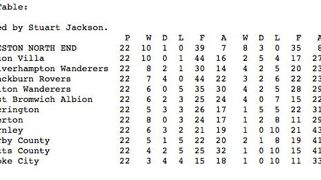 Самый первый чемпионат чемпионат Англии по футболу Футбольная лига 1888/89 — 1-й сезон в истории Футбольной лиги в Англии. В нём приняло участие всего 12 команд, которые провели по два матча между собой в два круга). Турнир проходил с 8 сентября 1888 по 20 апреля 1889 года. В первый день было сыграно 5 матчей. Вот их результаты: ...