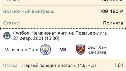 Мой прогноз на футбол Манчестер Сити - Вест Хэм Юнайтед 27.02.21