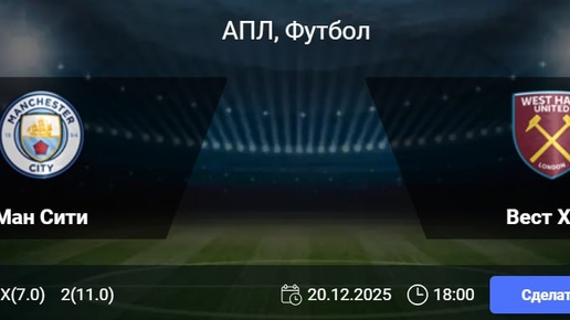 ⚽ АПЛ | Манчестер Сити — Вест Хэм