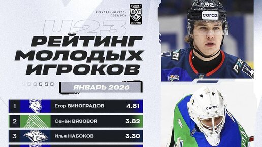 На сайте Континентальной хоккейной лиги опубликован Топ-10 лучших молодых игроков по итогам первого месяца 2026-го года. В списке присутствуют два нападающих из нижегородского «Торпедо». На 4-й строчке расположился 17-летних Глеб Пугачев. Яркий старт в сильнейшей лиге континента позволил парню ворваться во всевозможные рейтинги. За 11 игр нападающий набрал 3 балла (2+1) с коэффициентом полезности «+8». Возглавил рейтинг, опередив двух вратарей — Илью Набокова («Металлург») и Семена Вязового («Салават Юлаев»), лучший бомбардир и снайпер «Автозаводцев» — Егор Виноградов...