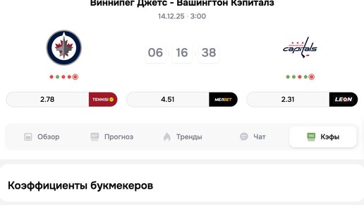🏒 Вашингтон Кэпиталз vs Виннипег Джетс