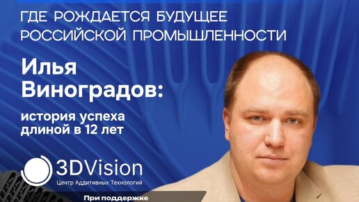 Илья Виноградов: история успеха длиной в 12 лет 👤 Генеральный директор 3DVision Илья Виноградов на форуме аддитивного производства «Конвергентум 2025» расскажет историю успеха своей компании, которая за 12 лет превратилась из небольшой идеи в лидера российского рынка аддитивных технологий. Основное внимание Илья уделит практическим аспектам создания и развития стартапа в сфере 3D-печати: от первоначального планирования инвестиций и формирования команды до построения эффективного производственного процесса...