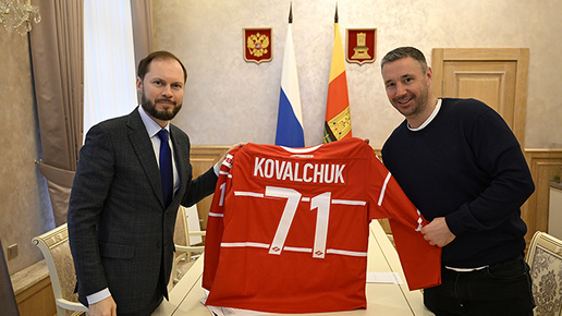 17 декабря временно исполняющего обязанности губернатора Тверской области Виталий Королев встретился с российским спортсменом, воспитанником тверской хоккейной школы, олимпийским чемпионом Ильей Ковальчуком. Как рассказали в региональном правительстве, в рамках встречи Виталий Королев вручил Илье Ковальчуку знак и удостоверение Почетного гражданина Тверской области. «Это очень приятная миссия, – отметил глава региона. – В целом считаю, что спорт необходимо поддерживать. Хоккей – тот вид спорта, который закаляет характер...