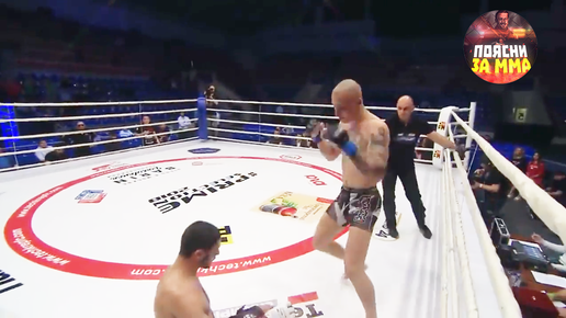 Парень с Кавказа так увлекся нанося удары, что был повержен в нокдаун, а затем и в нокаут за 10 сек. до конца 1 раунда