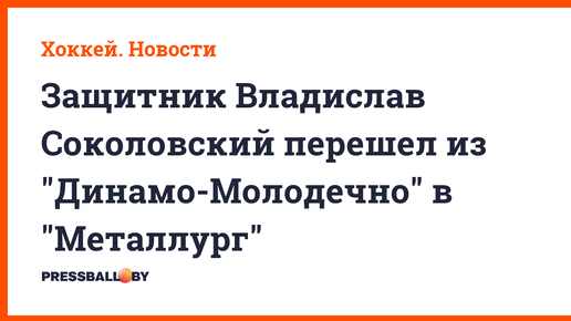 Защитник Владислав Соколовский перешел из "Динамо-Молодечно" в "Металлург"