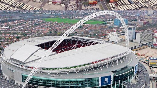 Wembley Старый Уэмбли просуществовал с 1923 по 2002 год. Максимальная вместимость составляла 127000 мест. Здесь проходили матчи ЧМ-1966 и Евро -1996, 5 финалов Кубка Чемпионов, финальные матчи кубка и кубка Лиги Англии. Последний матч состоялся 7 октября 2000 года между Англией и Германией. Новый Уэмбли сдан в эксплуатацию 9 марта 2007г. после 5 лет строительства, которое обошлось в 757 миллионов фунтов. Проект компаний Foster and Partners and Populous. Официальное открытие состоялось 19 мая матчем финала кубка Англии 2007 между Челси и Манчестер Юнайтед...