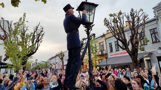 Вечер, фонари, Советская улица, часы, туристы - этими слова можно описать эту очень уютную и добрую традицию, которую возродили в 2009 году в Бресте. Каждый вечер, в любую погоду десятки туристов ждут появления того самого штатного фонарщика. Он одет в темно-синий мундир, а на голове его фуражка. С собой у него лестница. Он пришёл с важной миссией - зажечь 17 керосиновых фонарей на центральной улице города. Чем раньше начинает смеркаться, чем короче день, тем раньше зажигаются фонари. Время зажжения...