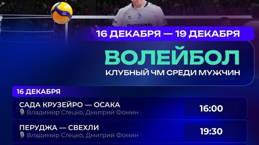 Завтра стартует клубный ЧМ по волейболу среди мужчин. Делимся расписанием группового этапа 🏐 😀 Смотри волейбол в Okko: https://okko.tv/s/vvf