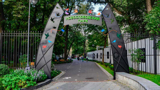 В начале сентября 2019 года, после благоустройства, для посетителей вновь открылся обновленный Новослободский парк. Парк полностью обновился - поменяли покрытие, освещение, все провода уложили под землю, появились новые детские, спортивные площадки, площадки для тихого отдыха. Давайте прогуляемся по новому парку и посмотрим, как же он изменился. Парк находится не далеко от станции метро Савёловская. В парк можно зайти как со стороны улицы Сущёвский вал, так и со стороны Новослободской улицы. Вот так выглядит вход в парк с улицы Новослободская...