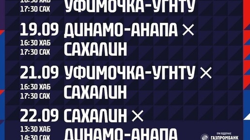 Волейбольный «Сахалин» опубликовал расписание игр, которые пройдут в первом туре Чемпионата России по волейболу среди женских команд Высшей лиги «А». Расписание опубликовали в телеграм-канале команды. Команды «Сахалин», «Уфимочка-УГНТУ», «Динамо-Анапа» и «Амурские Тигрицы» поборются за победу с 18 по 22 сентября в Хабаровске. Игры пройдут в Универсальном краевом спортивном комплексе. Все игры с участием островной команды будут проходить в 16:30 по хабаровскому времени...