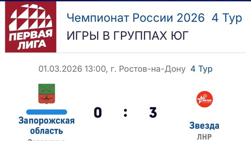 Хорошее начало весны: Группового этапа Чемпионата России первая лига ЮФО ! И вот такие итоги заключительного тура Группового этапа Чемпионата России первая лига ЮФО . Группа А 1. «Звезда» 2. «Спартак» 3...