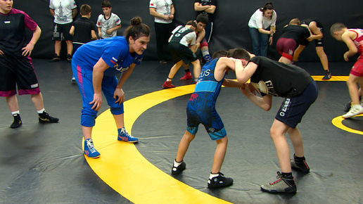 Как правильно совершить захват, сделать эффектный, а, самое главное, эффективный прием юным борцам продемонстрировала олимпийская чемпионка по вольной борьбе Наталья Воробьева. Такая встреча вызвала у ребят настоящий ажиотаж. В зале собрались несколько десятков юных спортсменов, для которых Наталья без преувеличения – настоящий кумир. Как рассказывают тренеры, целую неделю дети говорили только о предстоящей встрече. В итоге мастер-класс длился более часа. Тренировка получилась интенсивной. Ну а Наталья Воробьева высоко оценила подготовку юных борцов...