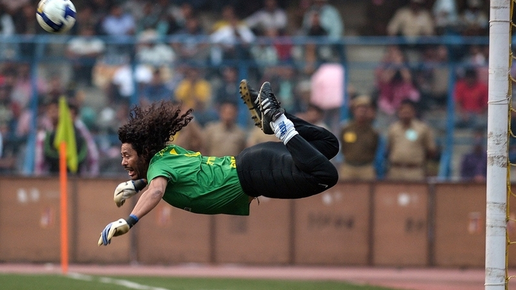 Вратарь сборной Колумбии Рене Игита - удар скорпиона.(90е годы)