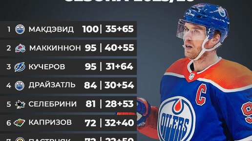 ⚡️✡️ Коннор Макдэвид первым в сезоне добрался до отметки в 100 очков