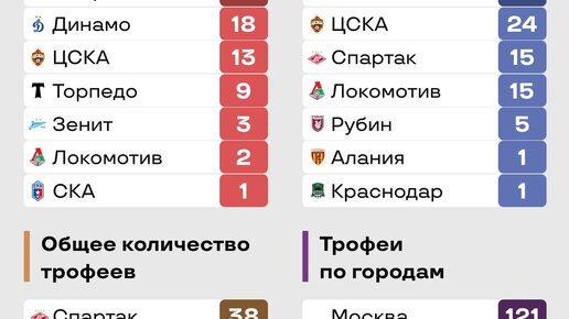 Рубин в топ-5 клубов России по трофеям в современной истории и в топ-7 по числу кубков за всю историю