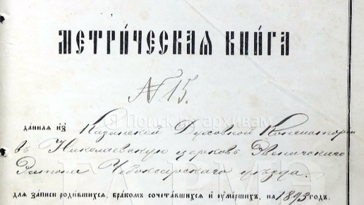 Метрические книги Тихвинской церкви г. Козьмодемьянск для записи родившихся, бракосочетавшихся, умерших. 1 января 1883 — 31 декабря 1917 ГА Республики Марий Эл (ГАРМЭ), фонд № 305, опись № 2, дело № 302, стр. 223 скан. Метрическая книга, данная из Казанской Духовной Консистории в Тихвинскую церковь города Козмодемьянск для записи родившихся, браком сочетавшихся и умерших на 1895 год. Часть первая. О родившихся. Стр. 234 скан. Декабрь. № 15. 15 числа родился. 20 числа крещен...