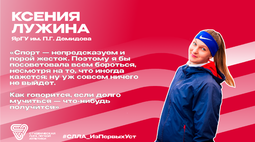 Ксения Лужина — кандидат в мастера спорта по легкой атлетике (прыжок с шестом), многократный призер первенств России U18, U20, победитель Первенства России U18, рекордсменка Ярославской области (4,15). А в декабре 2024 она стала лучшей в прыжке с шестом среди женщин на соревнованиях «Звезды студенческого спорта». Знакомимся с Ксенией! Как ты вообще попала в легкую атлетику, как развивался там твой путь до того, что есть сейчас? Почему именно прыжок с шестом? Я попала в легкую атлетику достаточно...