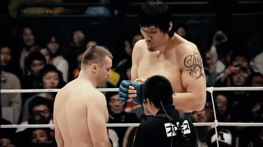 Известный боец Мирко Филипович по прозвищу "Крокоп" столкнулся с огромным бойцом из Азии. Боец из Азии Хон Ман Чой показывал внушительную статистику побед в кик-боксинге его называли "Корейский Колосс". Как вам хорошо известно Мирко обладал сокрушительным ударом ногой. И многих он отправил в нокаут ударом в голову левой ногой (Корее скорее всего думал Мирко просто не достанет ногой )) ). Но к бою! Мирко проверяет бойца из Кореи на прочность ногами. И Хон этого ожидает. Лоу... И хай кик.. Он просто не достает) Кореец высоковат))...