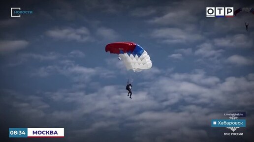 Спасатели отработали спуски с вертолета и прыжки с парашютом в пригороде Хабаровска