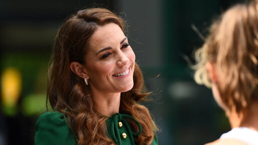 Герцогиня Кембриджская вместе со своей родственницей герцогиней Сассекс сегодня приехала в Уимблдон, чтобы посмотреть финал по теннисным соревнованиям среди женщин. Кейт Миддлтон который год приезжает за некоторое время до официального начала матча, чтобы побывать «за кулисами» и пообщаться с участниками турнира и теми, без кого его бы не было - организаторами. На ней зеленое платье с золотыми пуговицами от бренда «Дольче и Габбана», не новое, но так идущее нашей стройной Кейт. Белая сумка тоже от того же бренда и сережки от Asprey, которые Кэтрин стала носить совсем недавно...
