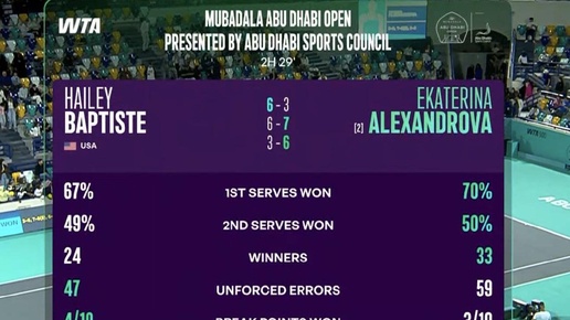 ⚡ WTA 500 Abu Dhabi SF: Александрова победила Баптист со счетом 3-6, 7-6(5), 6-3