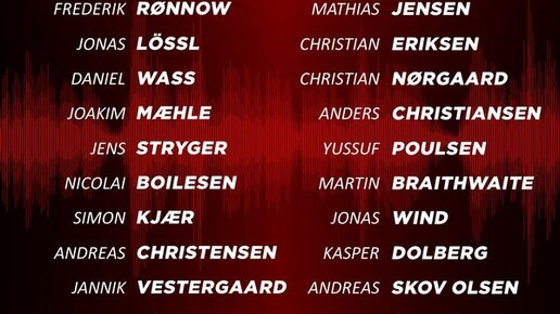 Андреас Корнелиус ("Парма") Главный тренер: Каспер Хьюлманн На сегодняшний день Дания является очень сильной командой. В отборе чемпионата Европы 2020 "Алая гвардия" хоть и заняла 2-е место, пропустив вперёд швейцарцев, но всё равно выступила отлично. А в отборочных матчах к ЧМ-2022, которые прошли в марте этого года, датчане одержал 3 уверенные победы с общим счётом 14:0. В составе сборной Дании очень много высококлассных футболистов. В первую очередь стоит выделить таких персон, как Кристиан Эриксен, Каспер Шмейхель, Пьер-Эмиль Хейбьерг, Симон Кьер и Юссуф Поульсен...