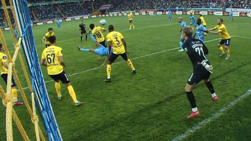 Соболев забил ударом через себя, гол «Ростова» на 95-й отменили из-за офсайда. «Зенит» отстает от «Краснодара» на очко за тур до конца