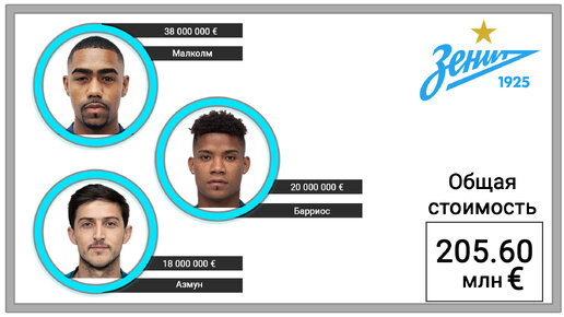 Зенит в таблицах других чемпионатов по стоимости игроков.