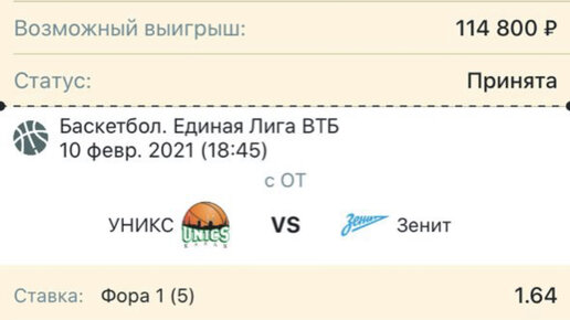 Мой прогноз на баскетбол 🏀 УНИКС - Зенит 10.02.21