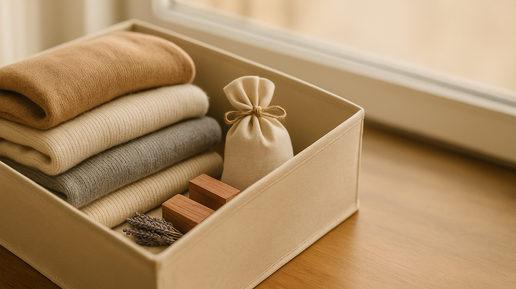 Нафталин — прошлый век: пахнет «бабушкиным сундуком» и перебивает любой аромат. Шерсть можно защитить чисто, красиво и без химозы. Ниже — как я спасаю кашемир, меринос и пальто у клиентов: какие саше работают, что морозить, как хранить, что делать при первых дырочках. Всё — простыми шагами. Работают не бабочки, а личинки платяной моли. Им нужна грязь (остатки пота, косметики, еды) и тепло/тихие углы. Поэтому чистая, проветренная шерсть почти всегда вне риска. Признаки: Мешки и боксы Саше и блоки (натуральные) Где класть: в каждый бокс/чехол + по 1–2 саше на полку...