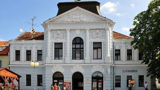 Приземистые домики, несколько более высоких особняков и здания социалистической эпохи – вот как сейчас выглядит центр городка Злате Моравце, в котором сейчас проживает около 15,5 тысяч человек...