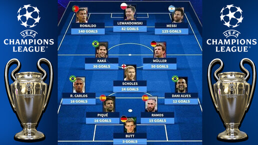 Символическая сборная Лиги Чемпионов: лидеры по голам на каждой позиции