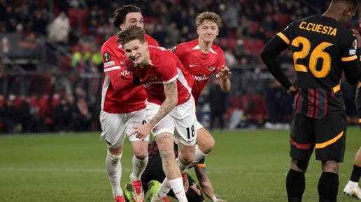 Лига Европы. Первый стыковой матч плей-офф. 13 февраля. Алкмаар. Стадион "АФАС". АЗ Алкмаар (Нидерланды) - Галатасарай (Турция) - 4:1 (2:1). Голы: Мейнанс, 12 (1:0). Шаллаи, 20 (1:1). Пэрротт, 37 - с пенальти (2:1). Класи, 58 (3:1). Вольфе, 66 (4:1). Статистика матча. Онлайн трансляция. В первой стыковой игре раунда плей-офф Лиги Европы АЗ одержал крупную победу над "Галатасараем" - 4:1! Матч в Алкмааре, как и ожидалось, получился ярким. В первом тайме слабости обороны чемпиона Турции превалировали над мастерством группы атаки стамбульцев...
