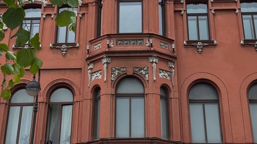 Дом Стенбок-Фермора🥀 Доходный дом построен в 1900 – 1901 годах архитектором В.П.Цейллером в стиле модерн. Этот участок до графа А.А.Стенбок-Фермора принадлежал его дяде, И.А.Яковлеву, правнуку и наследнику С.Я.Яковлева – богатейшего заводчика и предпринимателя второй половины XVIII века. Яркий фасад дома украшен куполами со шпилями, эркерами, богатым лепным декором, балконами и картушем с ангелочками...