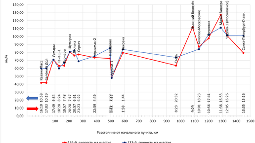 Вот и добрались мы до №133/134. И поезда на этом номере если не с диаметрально противоположными характеристиками, то очень разные. Санкт-Петербург-Казань по нашим меркам быстр. Москва-Дербент - наоборот. Вот с "Поволжья" и предлагаю начать. По графикам это вроде бы и не очень заметно, но вообще №133 прилично отличается по времени хода от №134. В Казань поезд следует 19 часов 42 минуты, а назад - 21 час 25 минут. Разница более полутора часов на общем времени 20 часов - прилично! При этом число остановок примерно одинаково - в сторону Казани нет лишь Вышнего Волочка...