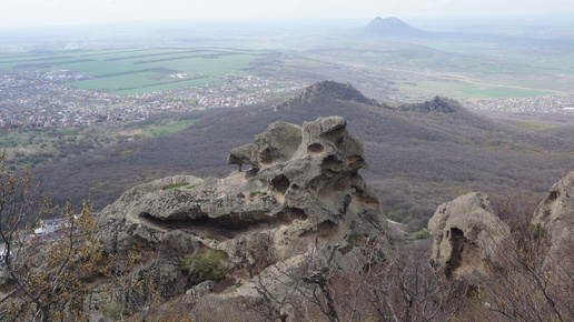 Если вы отдыхаете в Пятигорске или неподалёку от него, обязательно нужно подняться на вершину горы Бештау. Это несложно и доступно даже тем, кто, как и мы, не считает себя спортсменами. О подъёме на гору Бештау я уже писала здесь. Тайны горы Бештау - уран, шафран и Орлиные скалы А теперь хочу рассказать о самом красивом месте на склоне горы Бештау — Орлиных скалах. Насмотревшись на прекрасные виды, открывающиеся с вершины Бештау, и немного замёрзнув от пронизывающего холодного ветра, мы спускаемся с вершины и планируем маршрут так, чтобы дорога вела нас через Орлиные скалы...