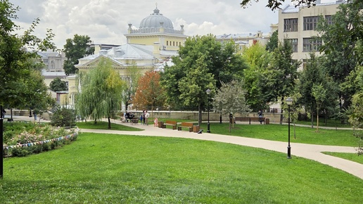 В прошлый раз мы остановились в парке Горка (оглавление в конце). Ещё раз посмотрим в сторону Верхнего Спасоглинищевского переулка. Переулок получил название в XVIII веке по церкви Спаса Преображения «в Глинищах» (впервые упоминается в 1460 году), построенной в урочище «Глинище» — месте с обилием глины для кирпича и гончарных изделий. Церковь, к сожалению, уничтожили в 1931 году. С 1960 по 1994 год переулок назывался улицей Архипова — в честь художника Абрама Ефимовича Архипова, жившего здесь...